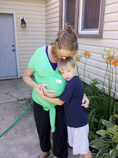FIRST time in the Sleep Wrap at 3 days old. We took a walk in our campground when we got home from the hospital. I quickly learned to tie the wrap much tighter.